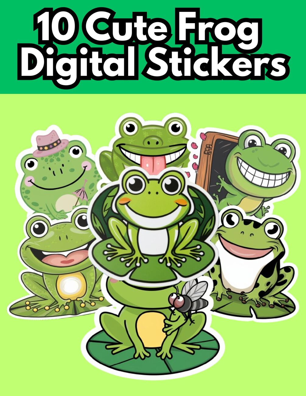 You will get a ZIP contain 10 Cute Frog Digital Stickers in PNG.